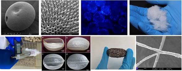 Biopolymers have a wide use in bioengineering due to their antimicrobial, antioxidant, biocampatible and non-toxic properties. In this seminar, production of three dimensional biomaterials from different organisms together with their characterization and application areas will be presented. The biomaterials that will be mentioned in this presentation will be a summary of our previous work. And these biomaterials are chitin, chitosan, cellulose and biosilica. The application areas of the produced 3D materials are i) drug loading and releasing properties, ii) food coating to increase the shelf life, iii) bio-cup production for healthy weight loss, iv) biological mesh samples to be used in surgical operations, v) production of multifunctional porous bioactive micro silica beads from a sponge for biomedical applications.